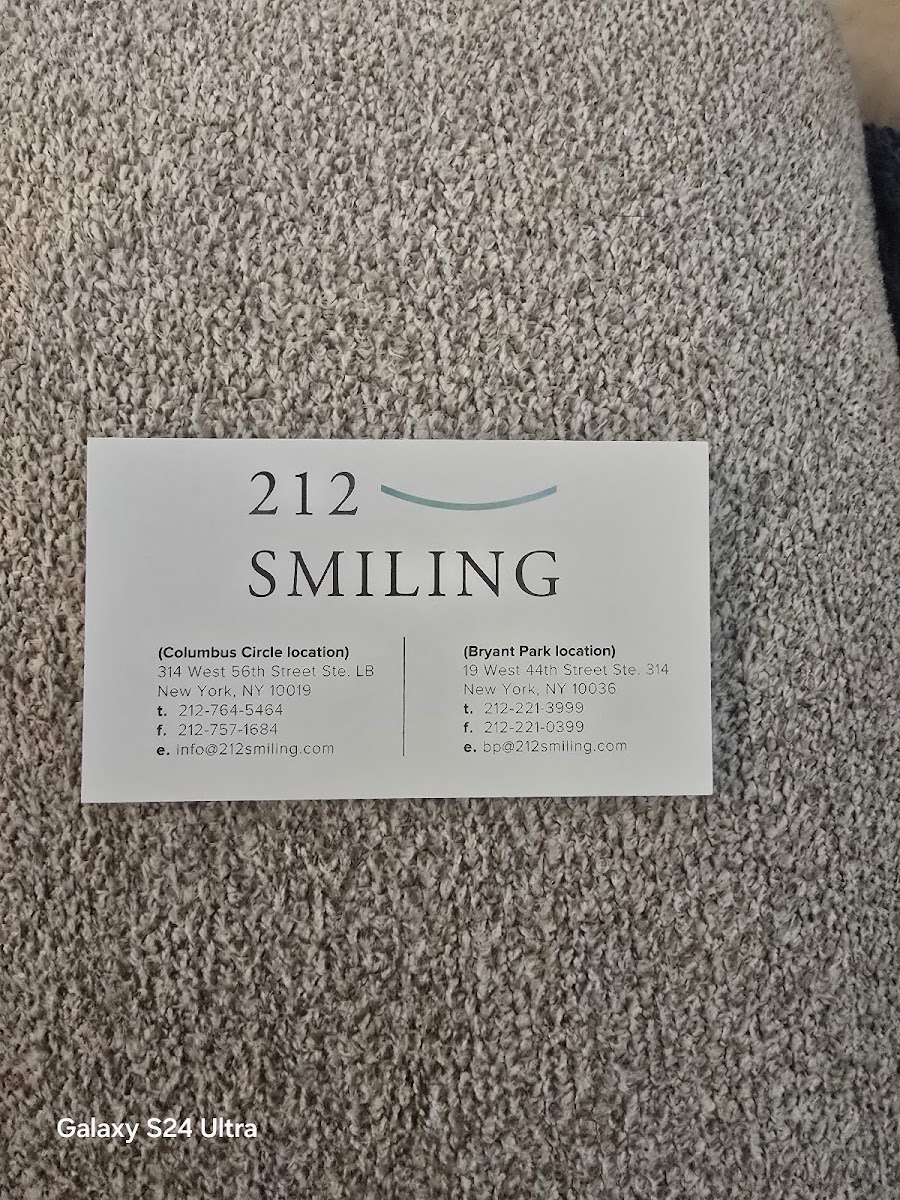 If you have any dental needs. 212 smiling should be your number one choice. From the amazing staff to the Dr.Kim himself you will not be disappointed. Im super pleased and I recommend 212 smiling to everyone!
