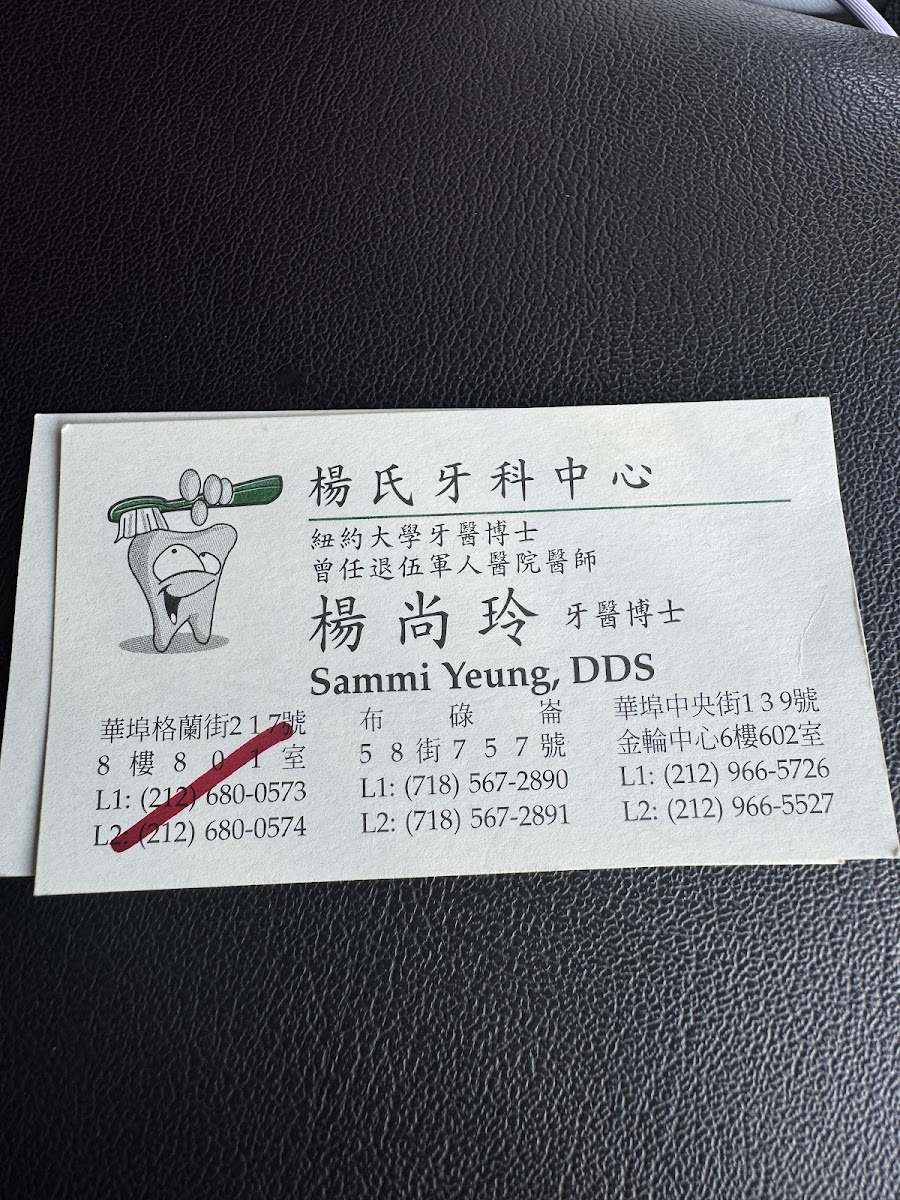 My families and I have been going to this dental office for many years. Dr Sammi Yeung is very knowledgeable and experienced. We never had any problems with our dental work or billing issues.